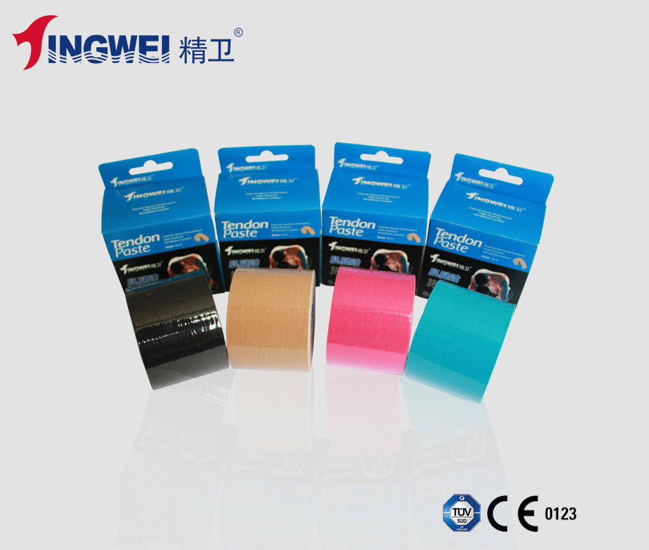 由98%棉和3%氨纶面料组成,涂以丙烯酸胶水波纹状胶面,成品弹力在1:1.6-1:1.8,具有防水,粘性持久稳定,不脱胶不残胶,背面覆隔离纸。十二色可选,可印刷,可模切。