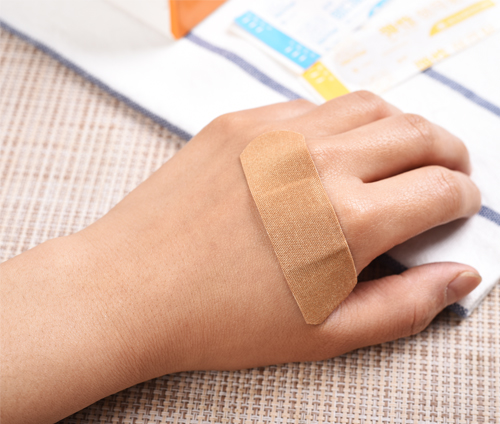 选取合适的规格,打开包装,取出创口贴,撕开隔离纸,将中间吸水垫对准创伤处,使胶层粘贴在皮肤上,用手轻轻按实固定即可。