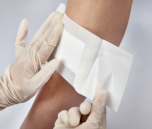 如自粘伤口敷料下的伤口出现大量渗液,可能会影响敷料的粘贴,此时应更换敷料。